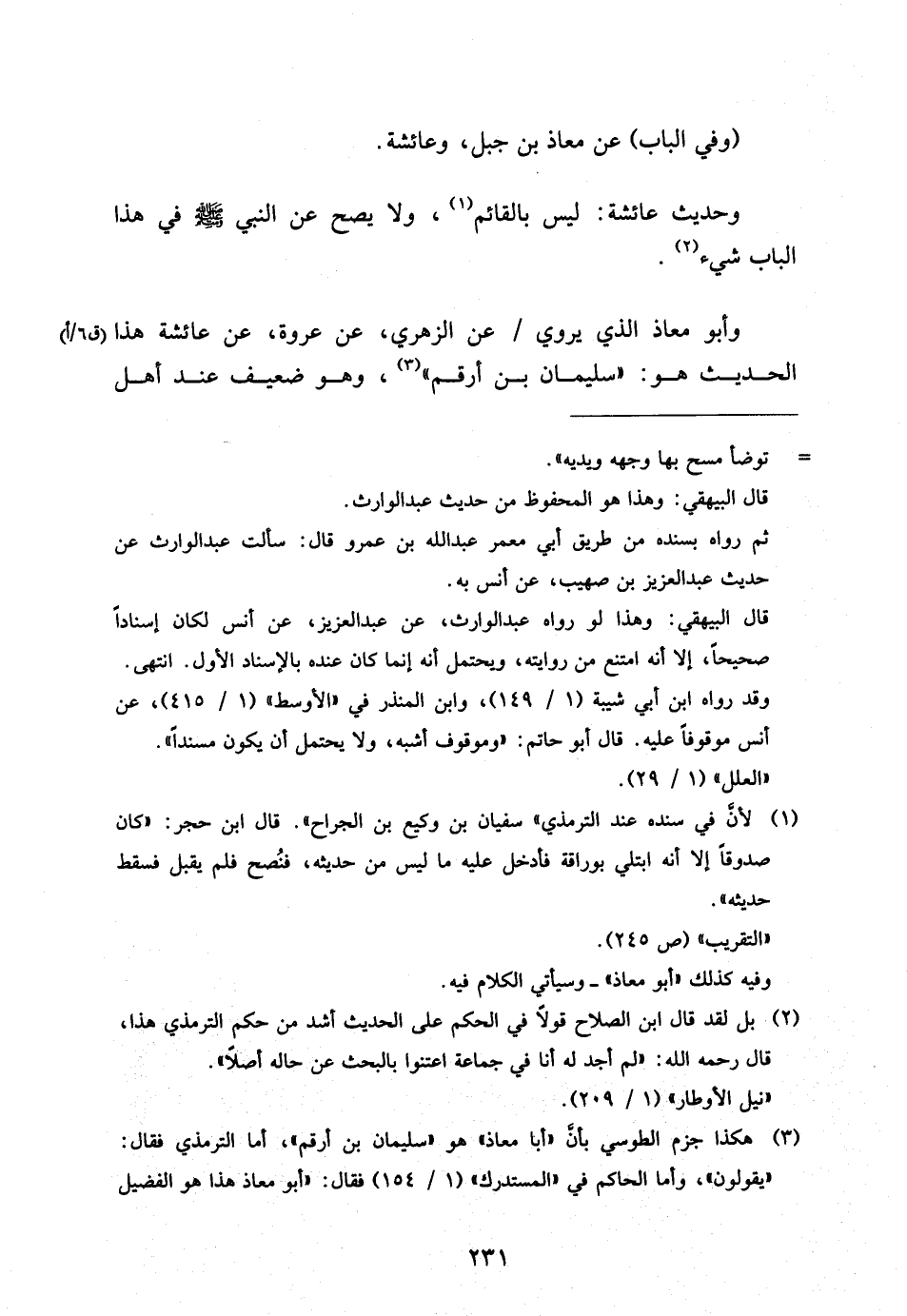 وَأَبُو مُعَاذٍ الَّذِي يَرْوِي عَنِ الزُّهْرِيِّ عَنْ عُرْوَةَ عَنْ عَائِشَةَ هَذَا الْحَدِيثَ هُوَ سُلَيْمَانُ بْنُ أَرْقَمَ وَهُوَ ضَعِيفٌ عِنْدَ أهل