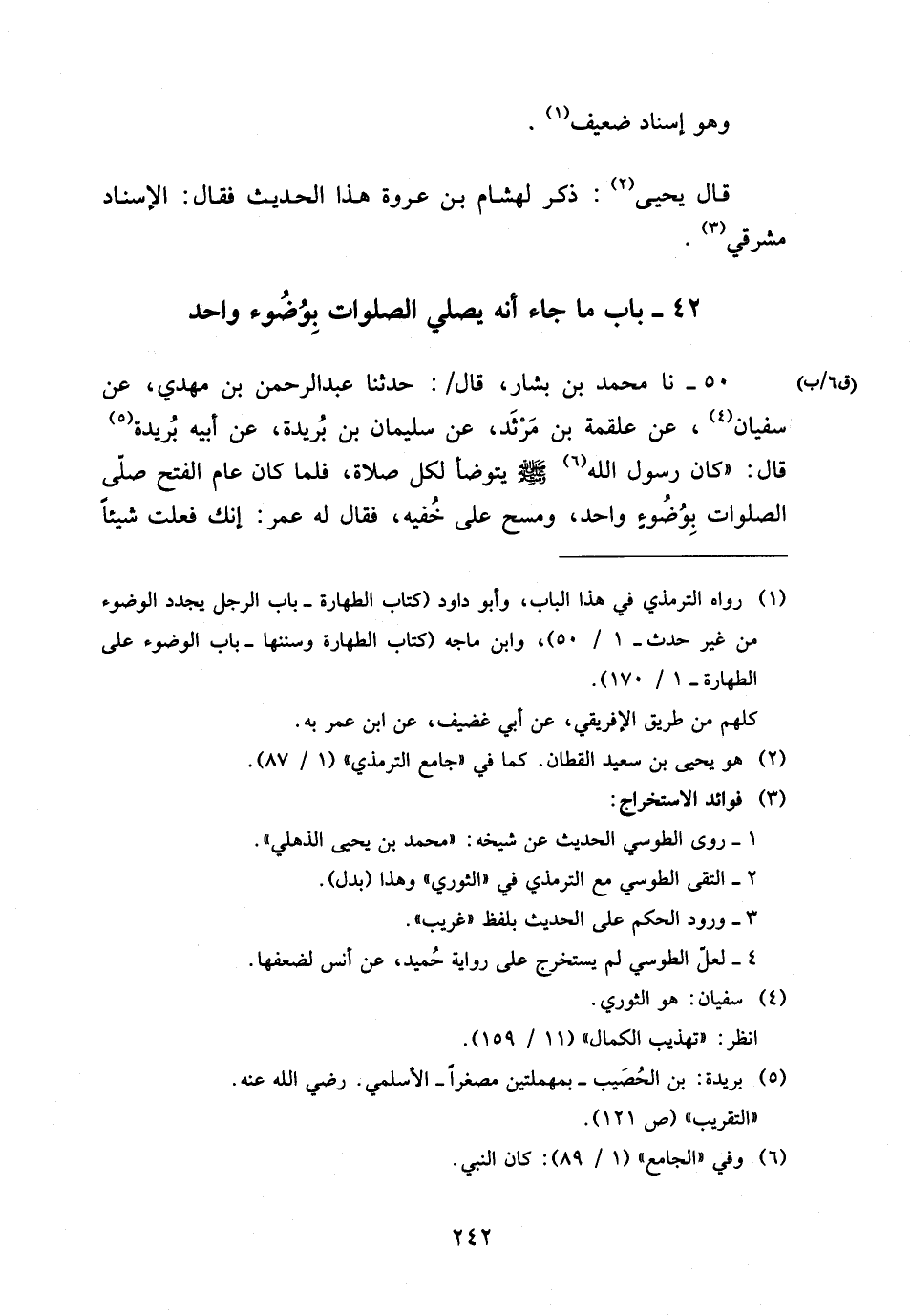 42 - بَابُ مَا جَاءَ أَنَّهُ يُصَلِّي الصَّلَوَاتِ بِوُضُوءٍ وَاحِدٍ