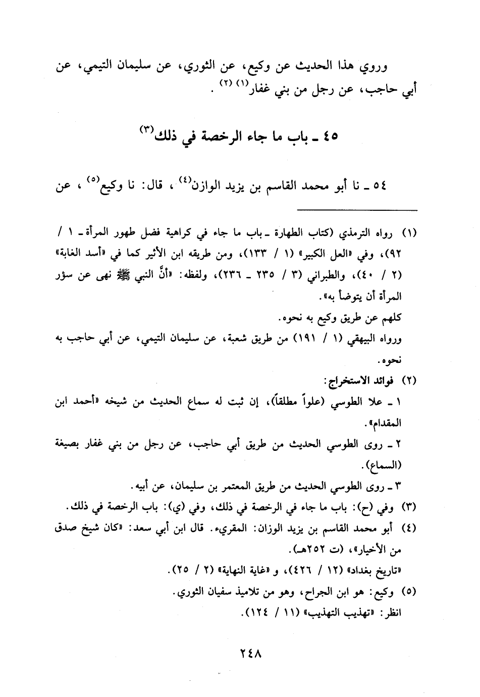 54 - نَا أَبُو مُحَمَّدٍ الْقَاسِمُ بن يزِيد الوازن قَالَ نَا وَكِيعٌ عَنْ