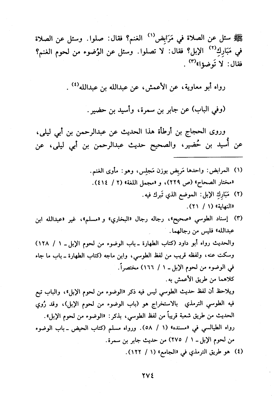 وَسُئِلَ عَنِ الصَّلاةِ فِي مَبَارِكِ الإِبِلِ فَقَالَ لَا تُصَلُّوا