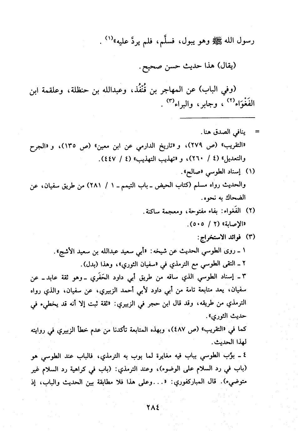 وَفِي الْبَابِ عَنِ الْمُهَاجِرِ بْنِ قُنْفُذٍ وَعَبْدِ اللَّهِ بْنِ حَنْظَلَةَ وَعَلْقَمَةَ ابْن الْفَغْوَاءِ وَجَابِرٍ وَالْبَرَاءِ