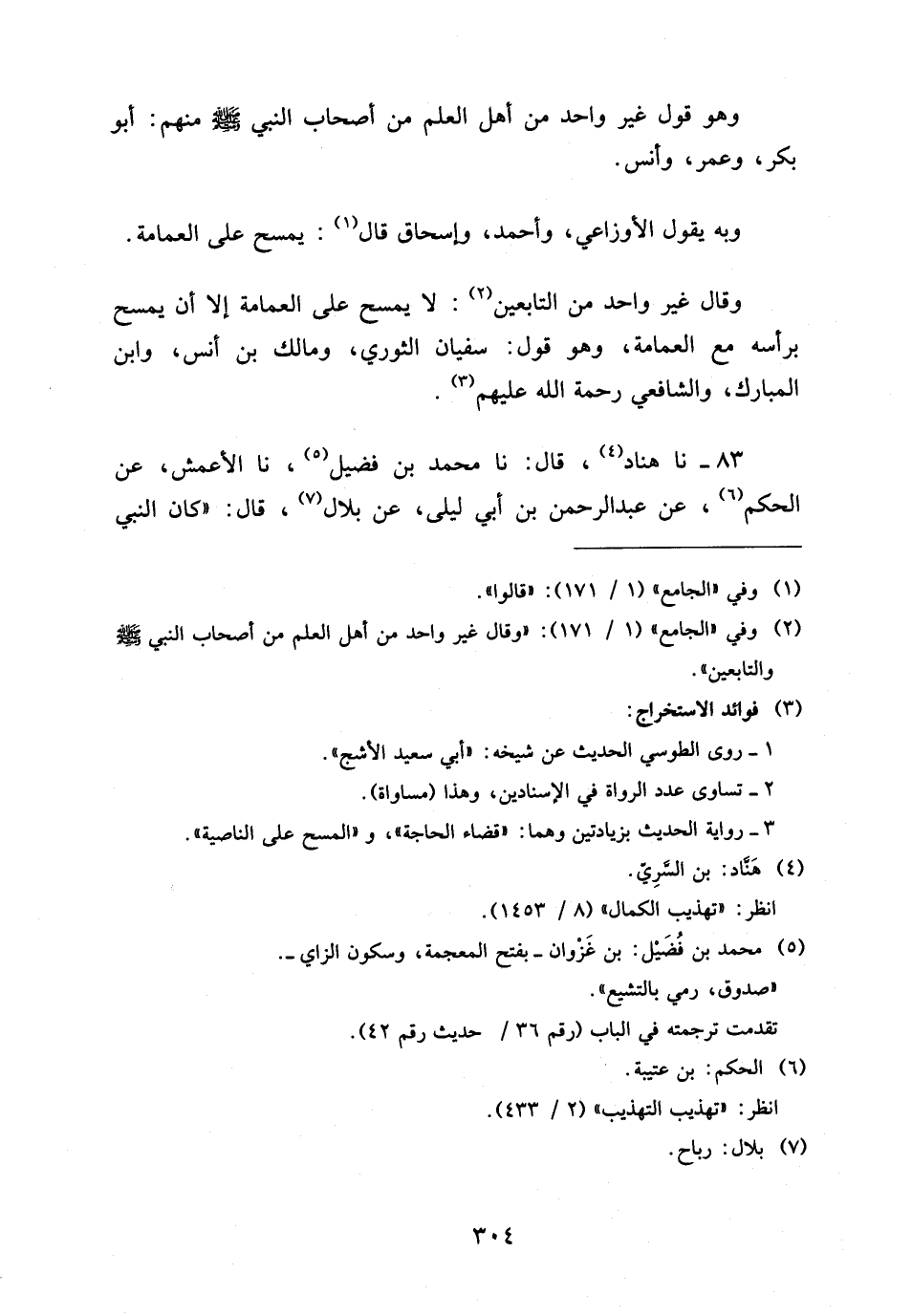 83 - نَا هَنَّادٌ قَالَ نَا مُحَمَّدُ بْنُ فُضَيْلٍ نَا الأَعْمَشُ عَنِ الْحَكَمِ عَنْ عَبْدِ الرَّحْمَنِ بْنِ أَبِي لَيْلَى عَنْ بِلالٍ قَالَ كَانَ النَّبِي