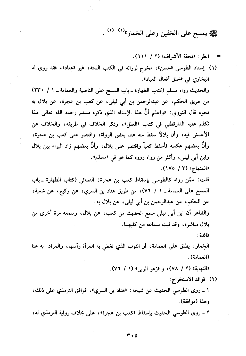 صَلَّى اللَّهُ عَلَيْهِ وَسَلَّمَ يَمْسَحُ عَلَى الْخُفَّيْنِ وعَلى الْخمار