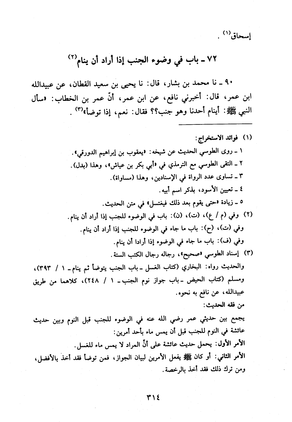 72 - بَابٌ فِي وُضُوءِ الْجُنُبِ إِذَا أَرَادَ أَنْ يَنَامَ