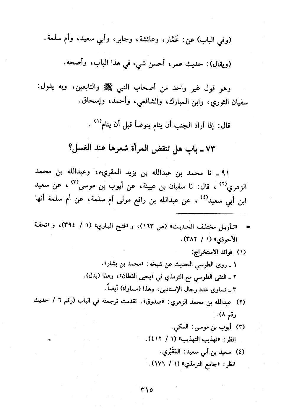 91 - نَا مُحَمَّدُ بْنُ عَبْدِ اللَّهِ بْنِ يزِيد المقريء وَعَبْدُ اللَّهِ بْنُ مُحَمَّدٍ الزُّهْرِيُّ قَالَ نَا سُفْيَانُ بْنُ عُيَيْنَةَ عَنْ أَيُّوبَ بْنِ مُوسَى عَن سعيد ابْن أَبِي سَعِيدٍ عَنْ عَبْدِ اللَّهِ بْنِ رَافِعٍ مَوْلَى أُمِّ سَلَمَةَ عَنْ أُمِّ سَلَمَةَ أَنَّهَا