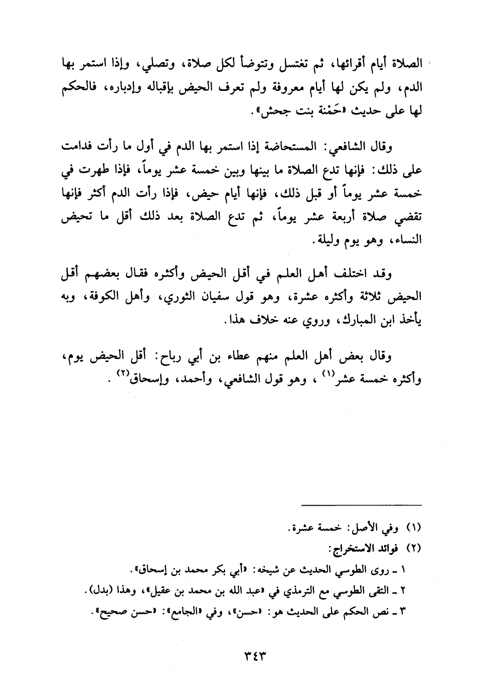وَقَدِ اخْتَلَفَ أَهْلُ الْعِلْمِ فِي أَقَلِّ الْحَيْضِ وَأَكْثَرِهِ فَقَالَ بَعْضُهُمْ أَقَلُّ الْحَيْضِ ثَلاثَةٌ وَأَكْثَرُهُ عَشَرَةٌ وَهُوَ قَوْلُ سُفْيَانَ الثَّوْرِيِّ وَأَهْلِ الْكُوفَةِ وَبِهِ يَأْخُذُ ابْنُ الْمُبَارَكِ وَرُوِيَ عَنْهُ خِلافَ هَذَا