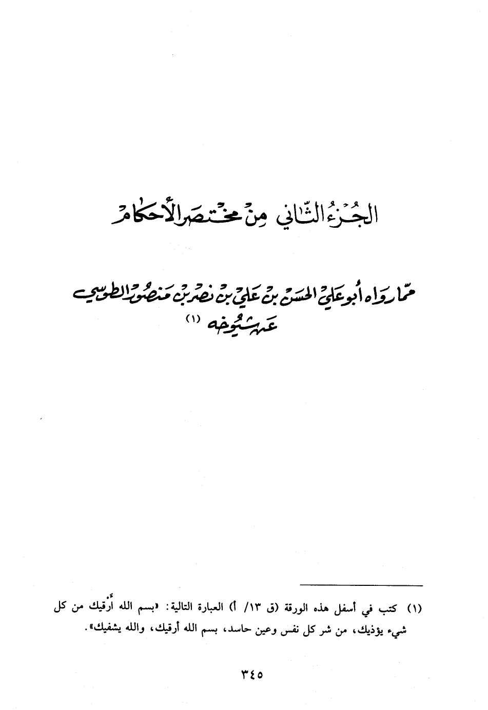 الْجُزْءُ الثَّانِي مِنْ مُخْتَصَرِ الأَحْكَامِ مِمَّا رَوَاهُ أَبُو عَلِيٍّ الْحَسَنُ بْنُ عَلِيِّ بْنِ نَصْرِ بن مَنْصُور الطوسي عَن شُيُوخه