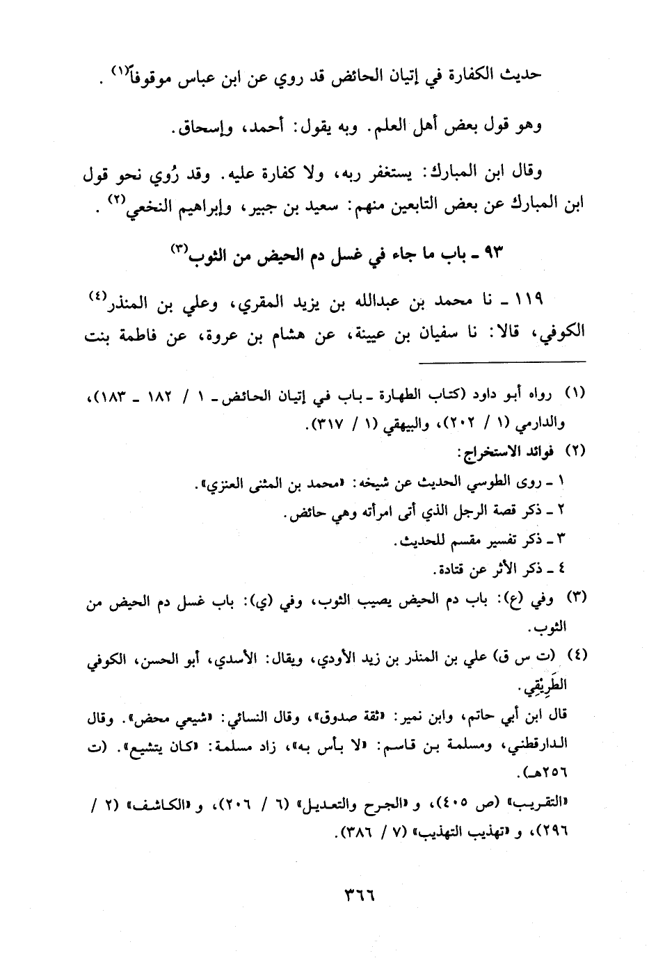 93 - بَابُ مَا جَاءَ فِي غَسْلِ دَمِ الْحَيْضِ مِنَ الثَّوْبِ