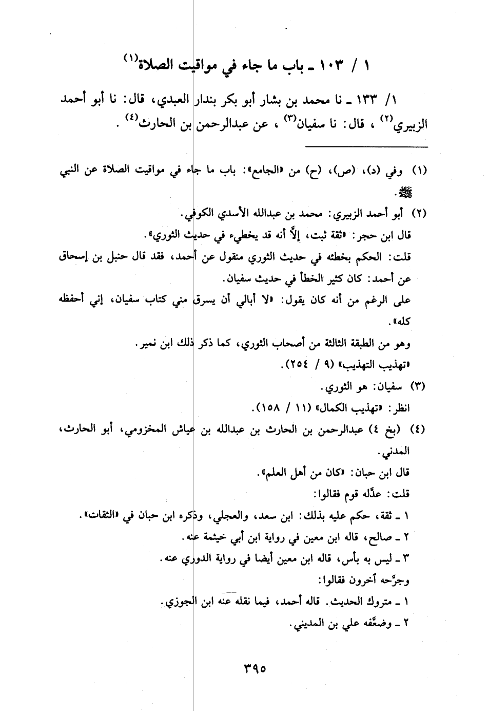 1 - / 133 نَا مُحَمَّدُ بْنُ بَشَّارٍ أَبُو بَكْرٍ بُنْدَارٌ الْعَبْدِيُّ قَالَ نَا أَبُو أَحْمَدَ الزُّبَيْرِيُّ قَالَ نَا سُفْيَانُ عَنْ عَبْدِ الرَّحْمَنِ بْنِ الْحَارِثِ