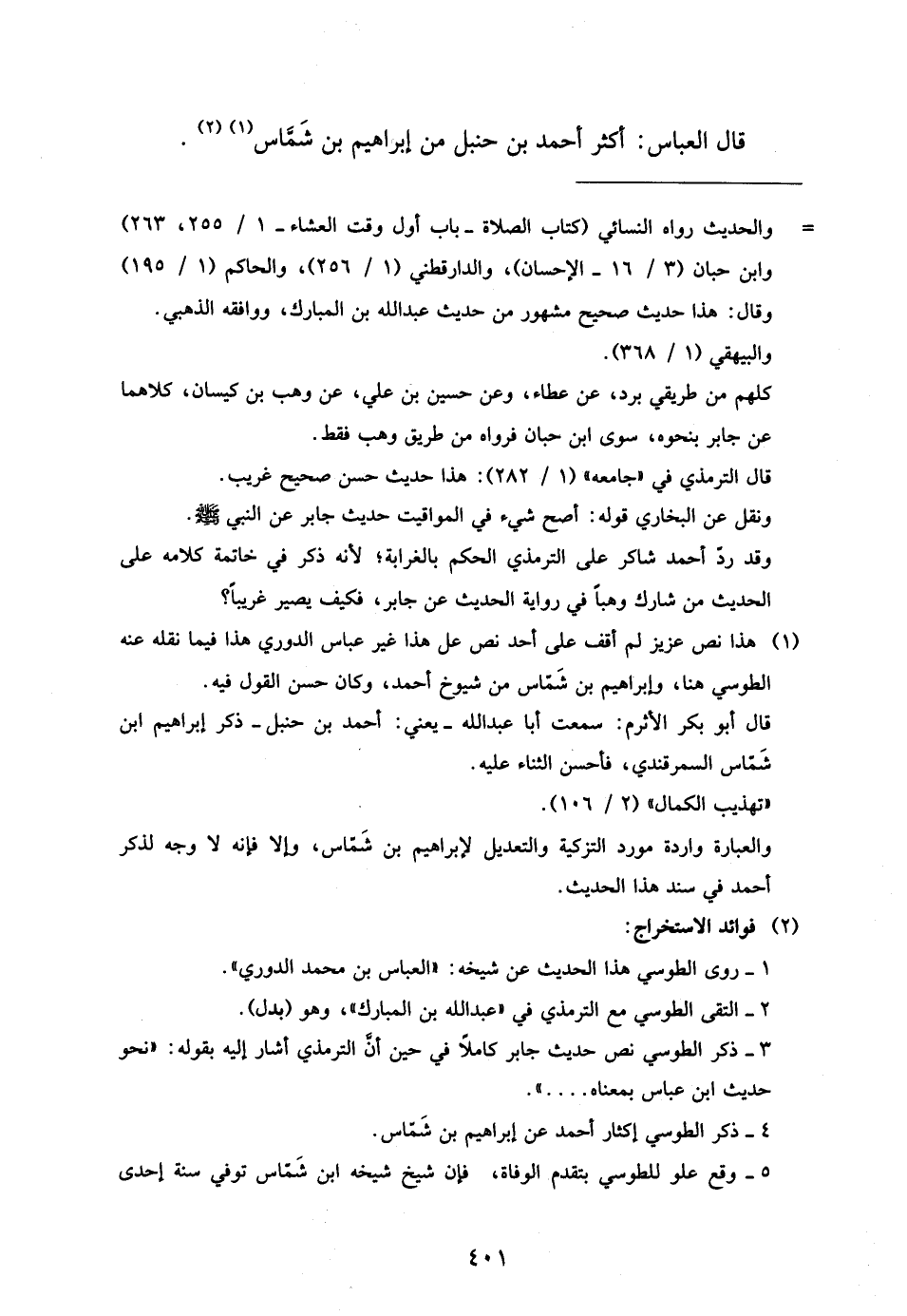 قَالَ الْعَبَّاسُ أَكْثَرَ أَحْمَدُ بْنُ حَنْبَلٍ مِنْ إِبْرَاهِيمَ بْنِ شَمَّاسٍ