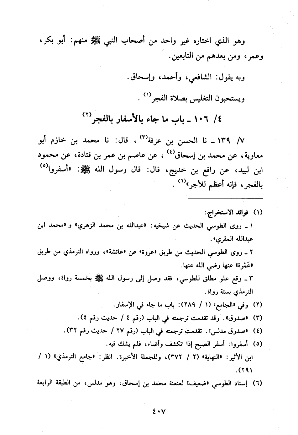 4 - / 106 بَابُ مَا جَاءَ بِالإِسْفَارِ بِالْفَجْرِ
