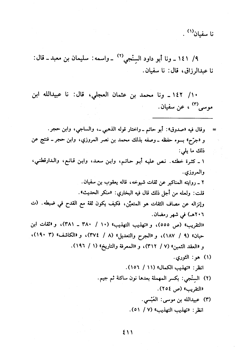 9 - / 141 وَنا أَبُو دَاوُدَ السِّنْجِيُّ وَاسْمُهُ سُلَيْمَانُ بْنُ مَعْبَدٍ قَالَ نَا عَبْدُ الرَّزَّاقِ قَالَ نَا سُفْيَانُ