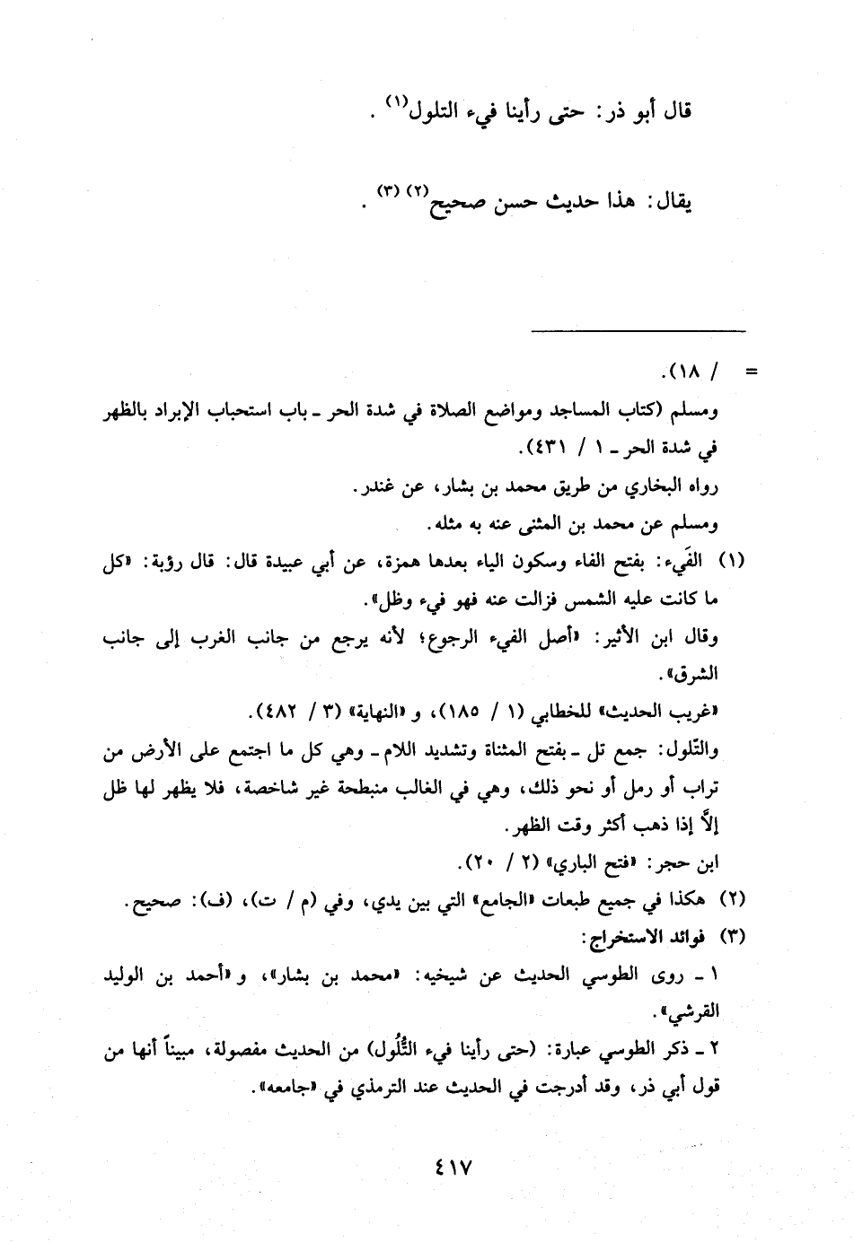 قَالَ أَبُو ذَرٍّ حَتَّى رَأَيْنَا فَيْءَ التِّلُولِ