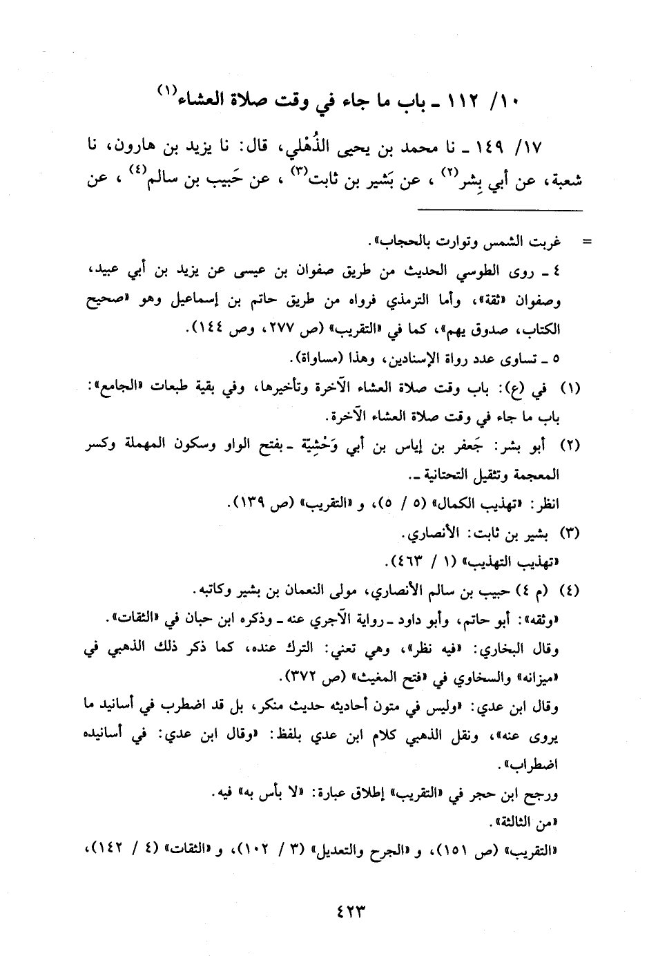 10 - / 112 بَابُ مَا جَاءَ فِي وَقْتِ صَلاةِ الْعِشَاءِ