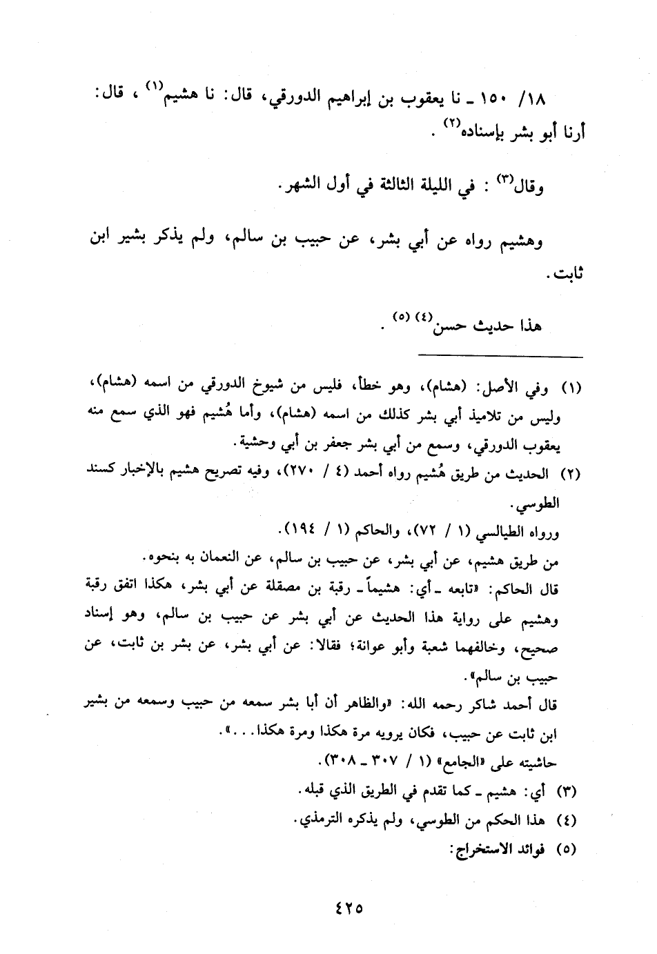 18 - / 150 نَا يَعْقُوبُ بْنُ إِبْرَاهِيمَ الدَّوْرَقِيُّ قَالَ نَا هُشَيْمٌ قَالَ أرنا أَبُو بِشْرٍ بِإِسْنَادِهِ