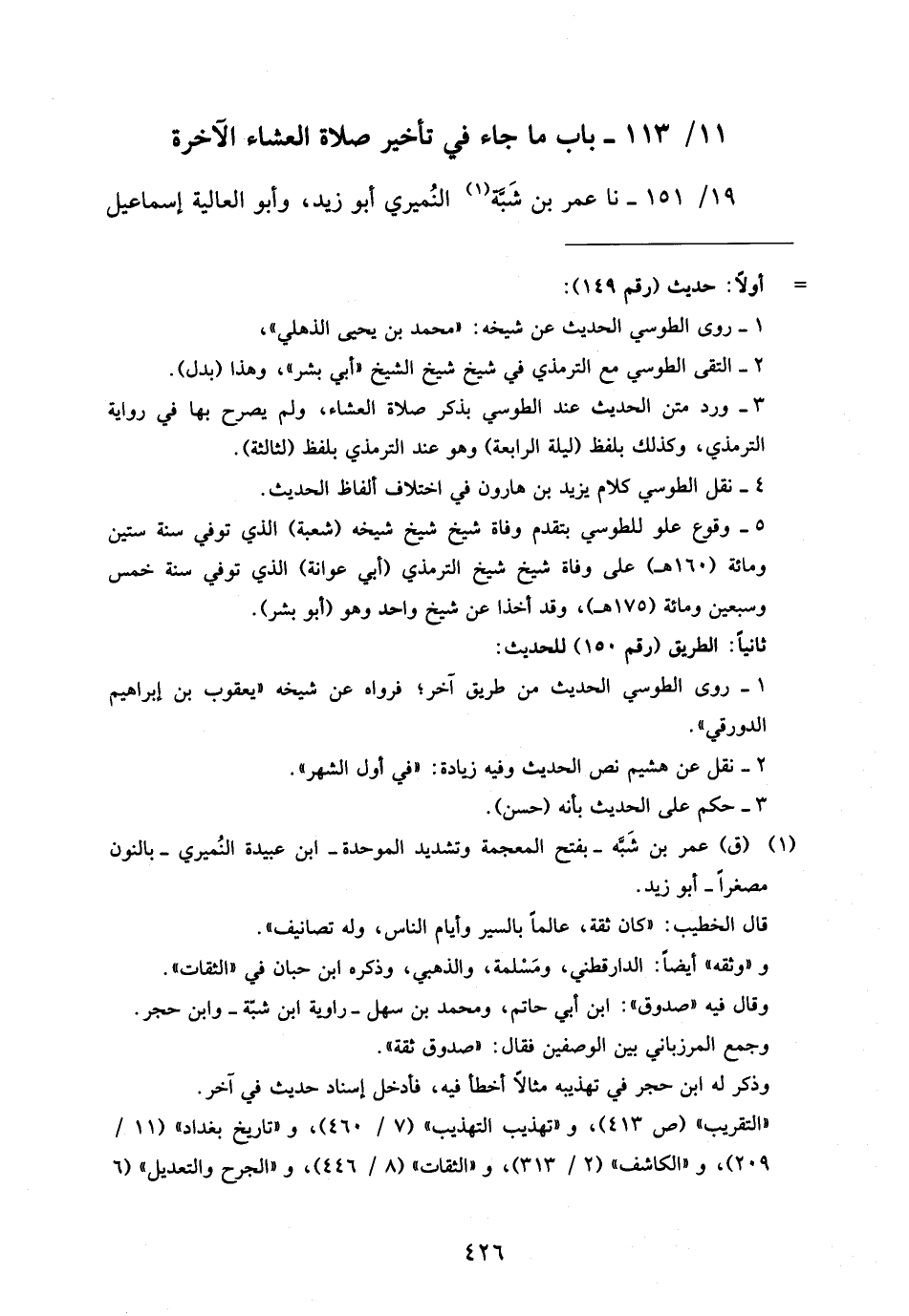 11 - / 113 بَابُ مَا جَاءَ فِي تَأْخِيرِ صَلاةِ الْعِشَاءِ الآخِرَةِ