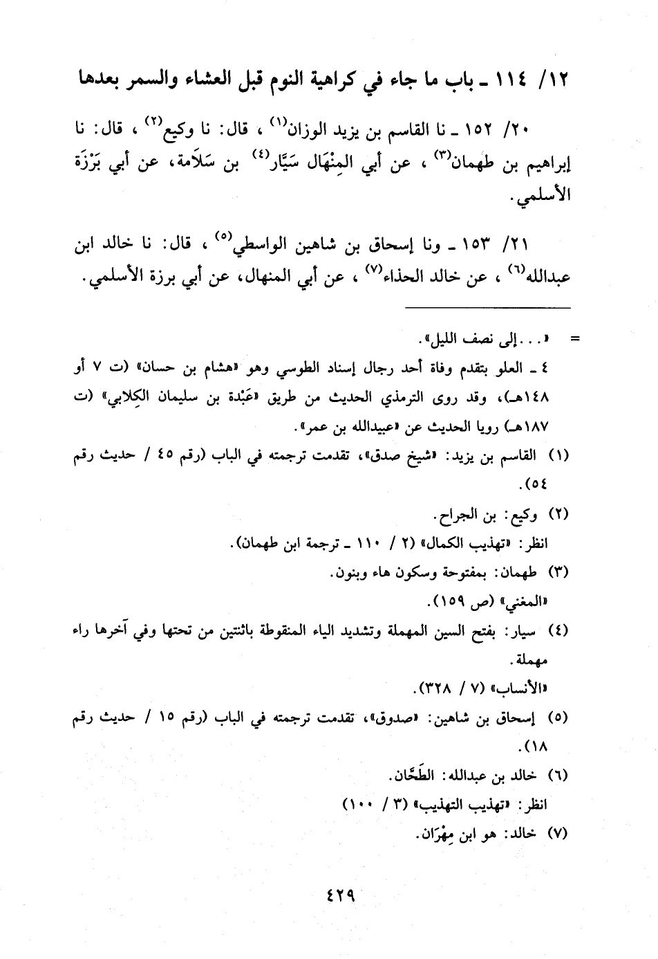 12 - / 114 بَابُ مَا جَاءَ فِي كَرَاهِيَةِ النَّوْمِ قَبْلَ الْعِشَاءِ وَالسَّمَرِ بَعْدَهَا
