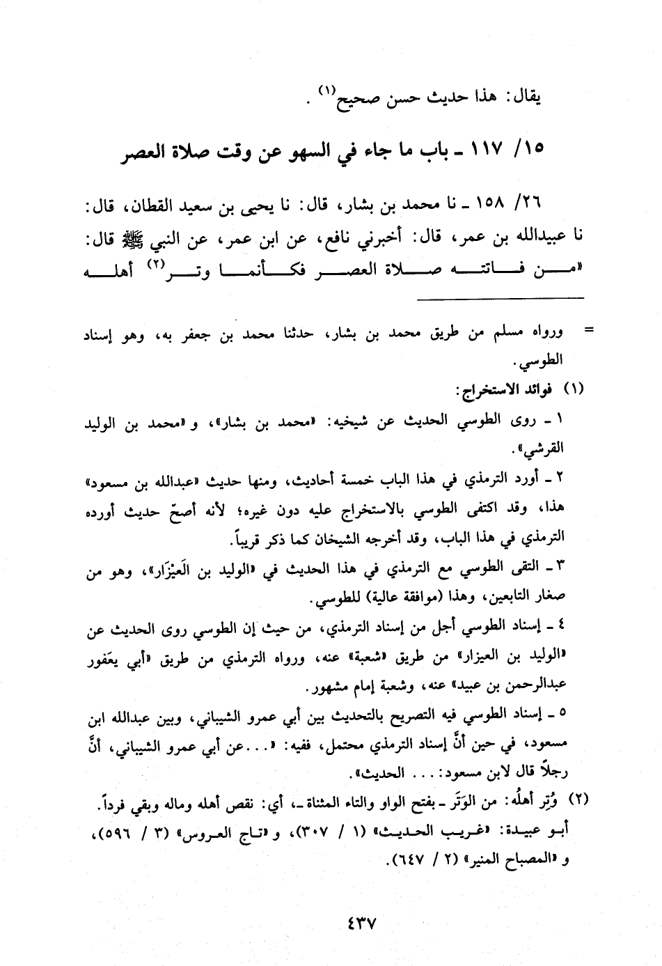 15 - / 117 بَابُ مَا جَاءَ فِي السَّهْوِ عَنْ وَقْتِ صَلاةِ الْعَصْرِ