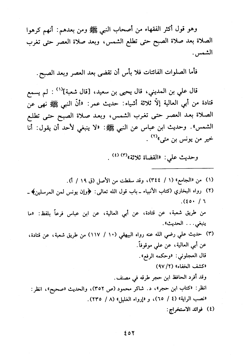 قَالَ عَلِيُّ بْنُ الْمَدِينِيِّ قَالَ يَحْيَى بْنُ سَعِيدٍ قَالَ شُعْبَةُ لَمْ يَسْمَعْ قَتَادَةُ مِنْ أَبِي الْعَالِيَةِ إِلا ثَلاثَةَ أَشْيَاءَ حَدِيثُ عُمَرَ أَنَّ النَّبِيَّ صَلَّى اللَّهُ عَلَيْهِ وَسَلَّمَ نَهَى عَنِ الصَّلاةِ بَعْدَ الْعَصْرِ حَتَّى تَغْرُبَ الشَّمْسُ وَبَعْدَ صَلاةِ الصُّبْحِ حَتَّى تَطْلُعَ الشَّمْسُ