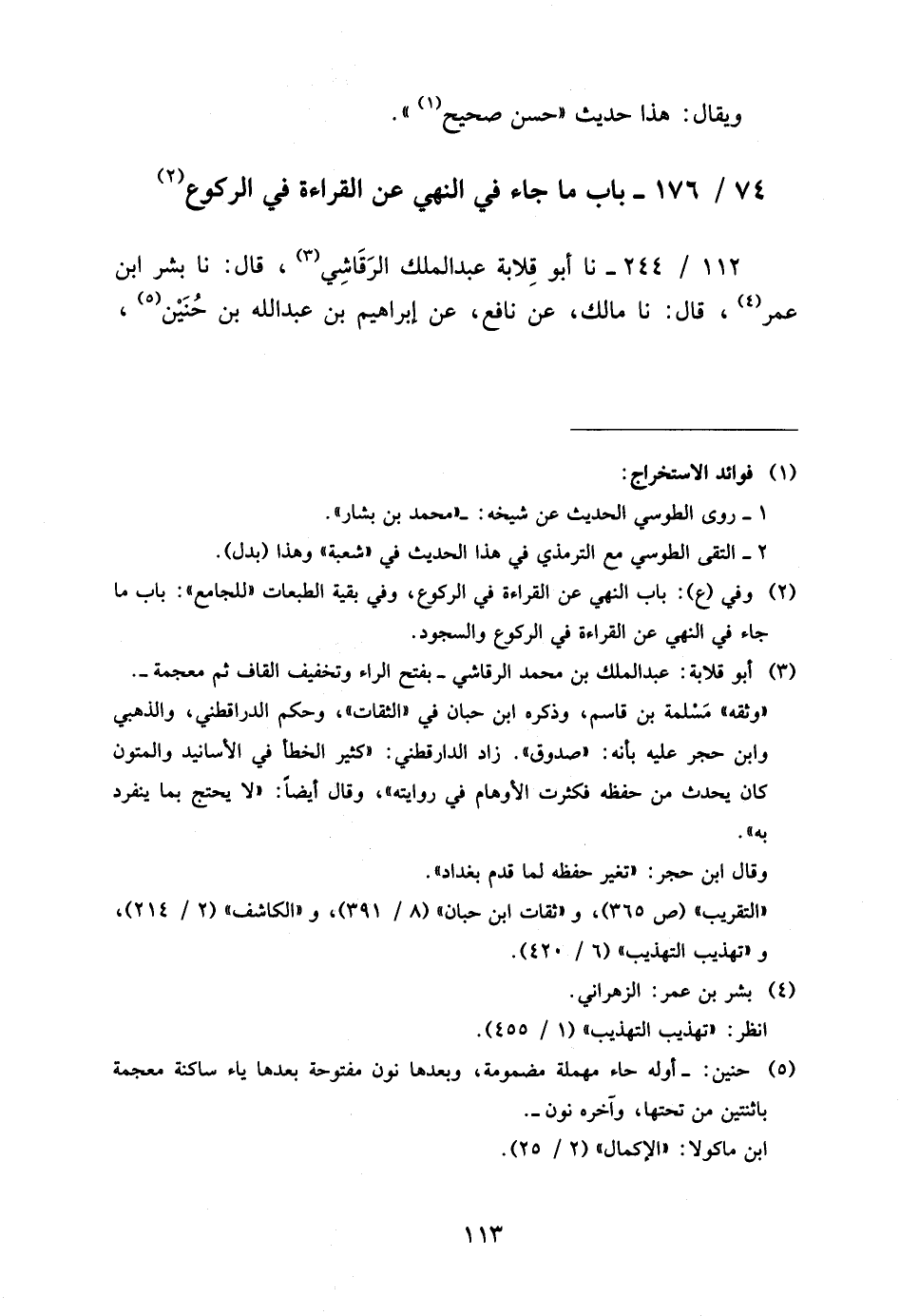74 - / 176 بَابُ مَا جَاءَ فِي النَّهْيِ عَنِ الْقِرَاءَةِ فِي الرُّكُوعِ
