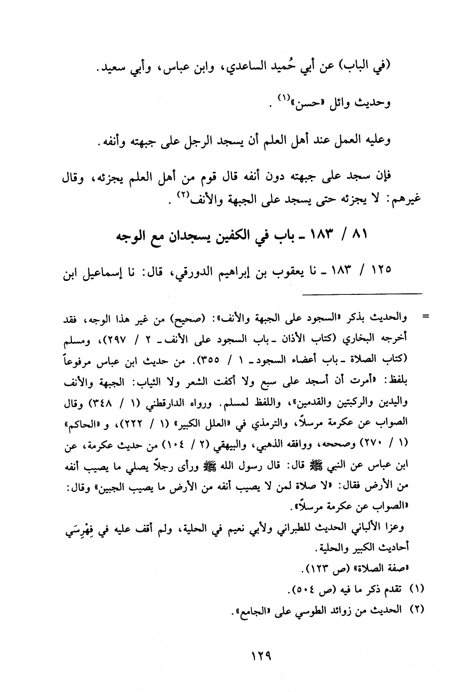 81 - / 183 بَابٌ فِي الْكَفَّيْنِ يَسْجُدَانِ مَعَ الْوَجْهِ