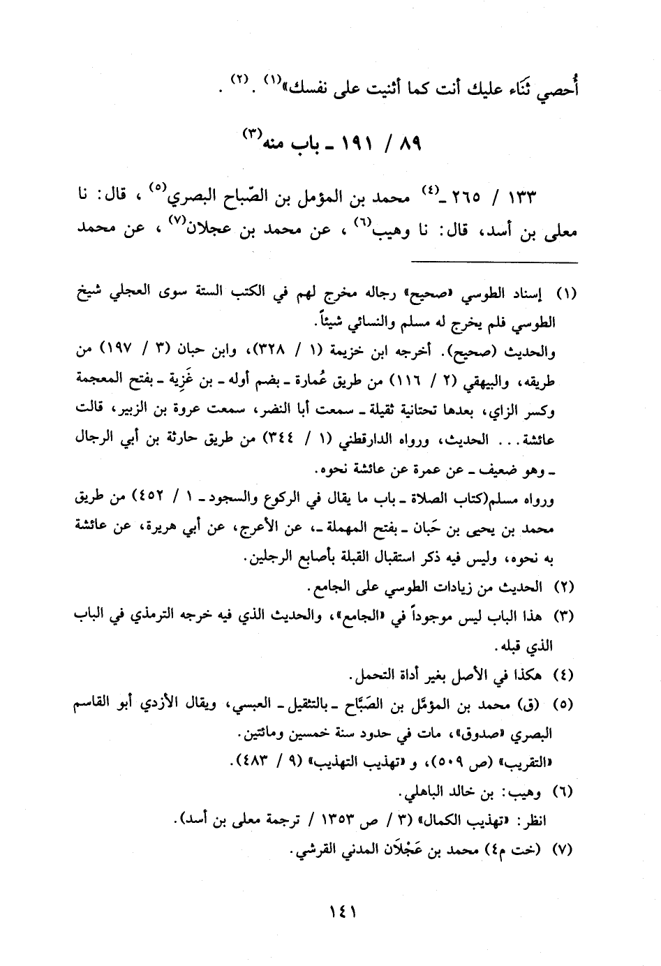 أُحْصِي ثَنَاءً عَلَيْكَ أَنْتَ كَمَا أَثْنَيْتَ عَلَى نَفْسِكَ