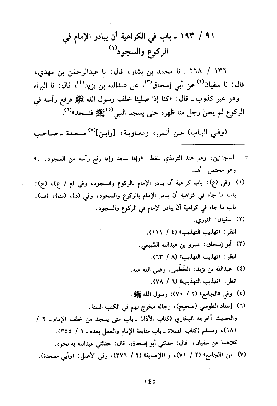 91 - / 193 بَابٌ فِي الْكَرَاهِيَةِ أَنْ يُبَادَرَ الإِمَامُ فِي الرُّكُوعِ وَالسُّجُودِ
