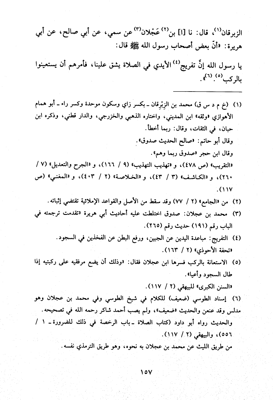 يَا رَسُولَ اللَّهِ إِنَّ تَفْرِيجَ الأَيْدِي فِي الصَّلاةِ يَشُقُّ عَلَيْنَا فَأَمَرَهُمْ أَنْ يستعينوا بالركب