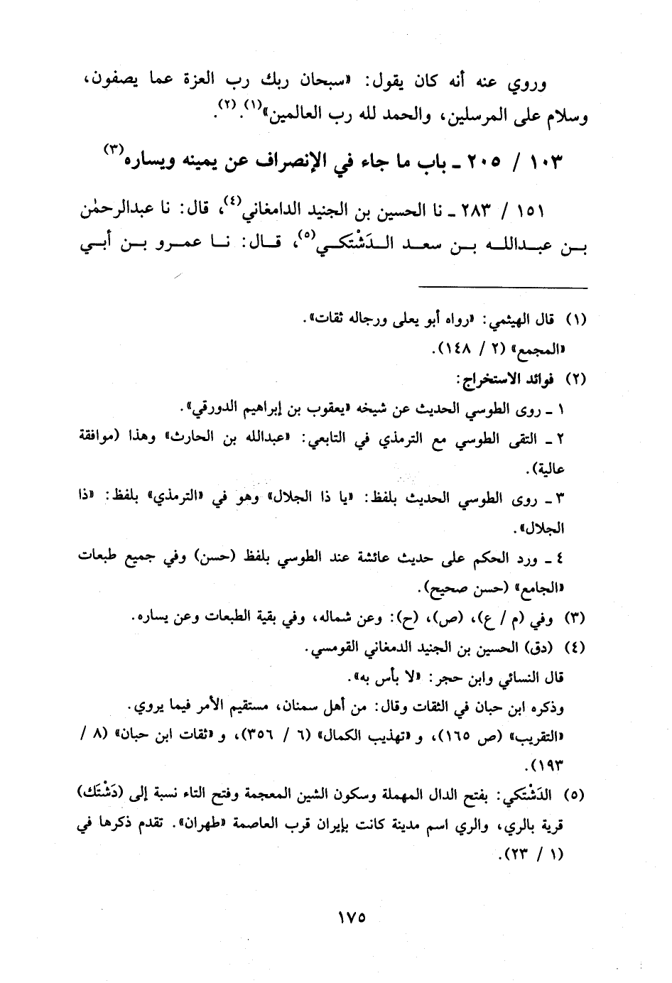 151 - / 283 نَا الْحُسَيْنُ بْنُ الْجُنَيْدِ الدَّامَغَانِيُّ قَالَ نَا عَبْدُ الرَّحْمَنِ بْنُ عَبْدِ اللَّهِ بْنِ سَعْدٍ الدَّشْتَكِيُّ قَالَ نَا عَمْرُو بْنُ أَبِي