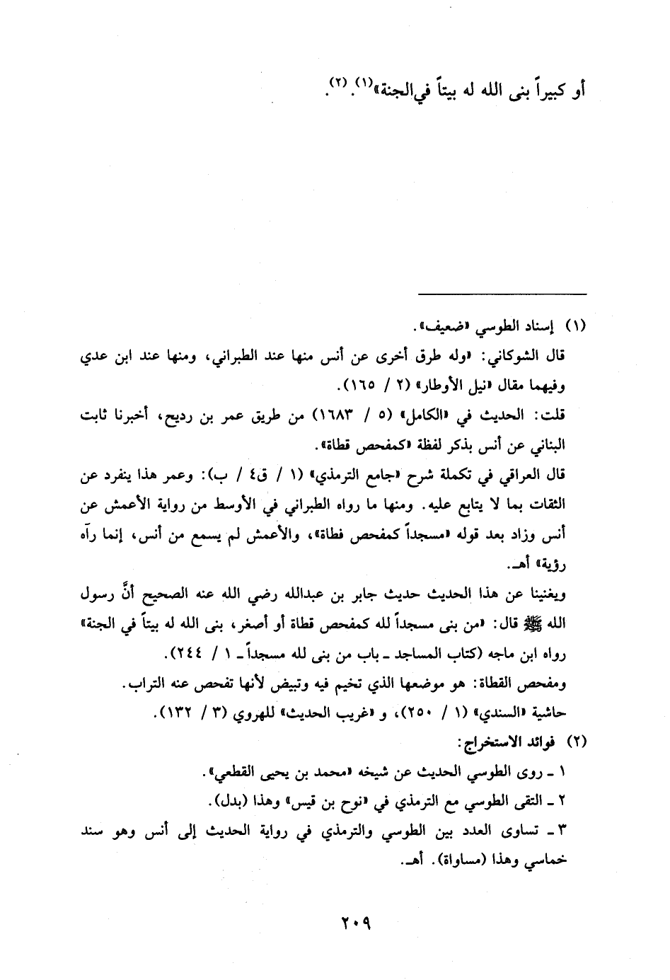 أَوْ كَبِيرًا بَنَى اللَّهُ لَهُ بَيْتًا فِي الْجنَّة