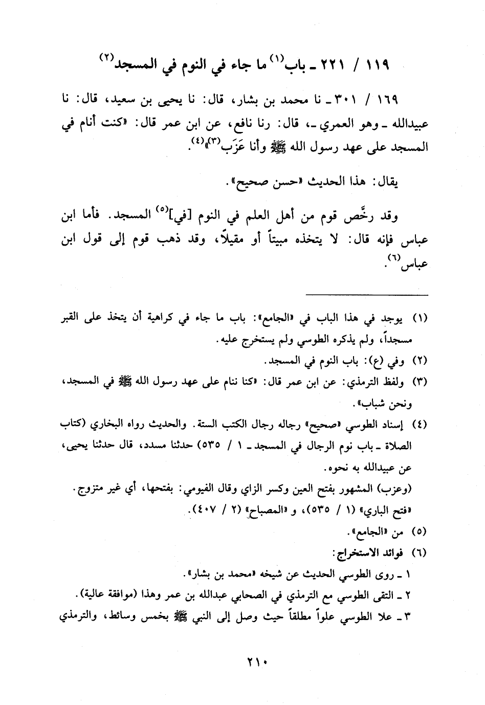 119 - / 221 بَابُ مَا جَاءَ فِي النَّوْمِ فِي الْمَسْجِدِ