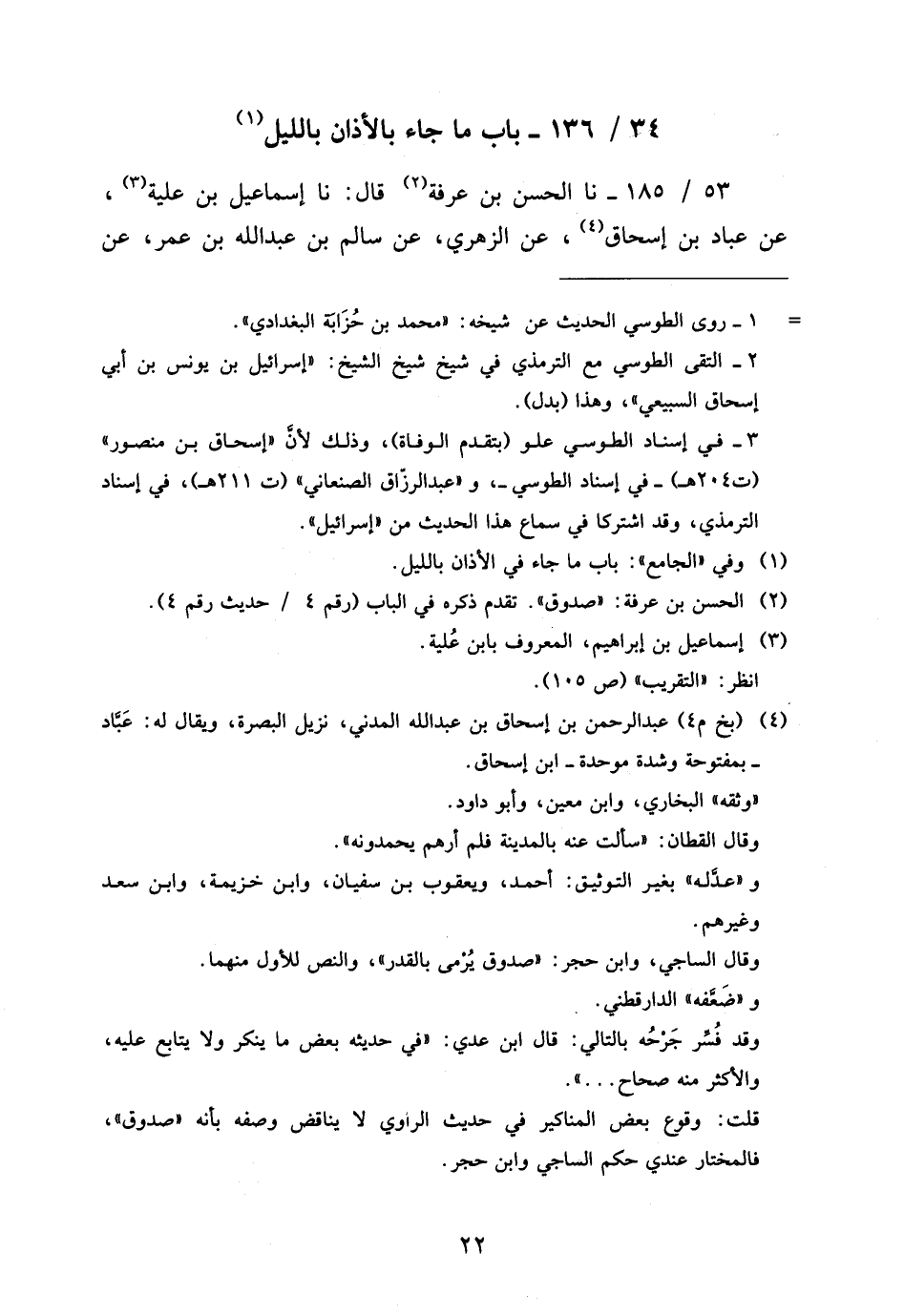 34 - / 136 - بَابُ مَا جَاءَ بِالأَذَانِ بِاللَّيْلِ