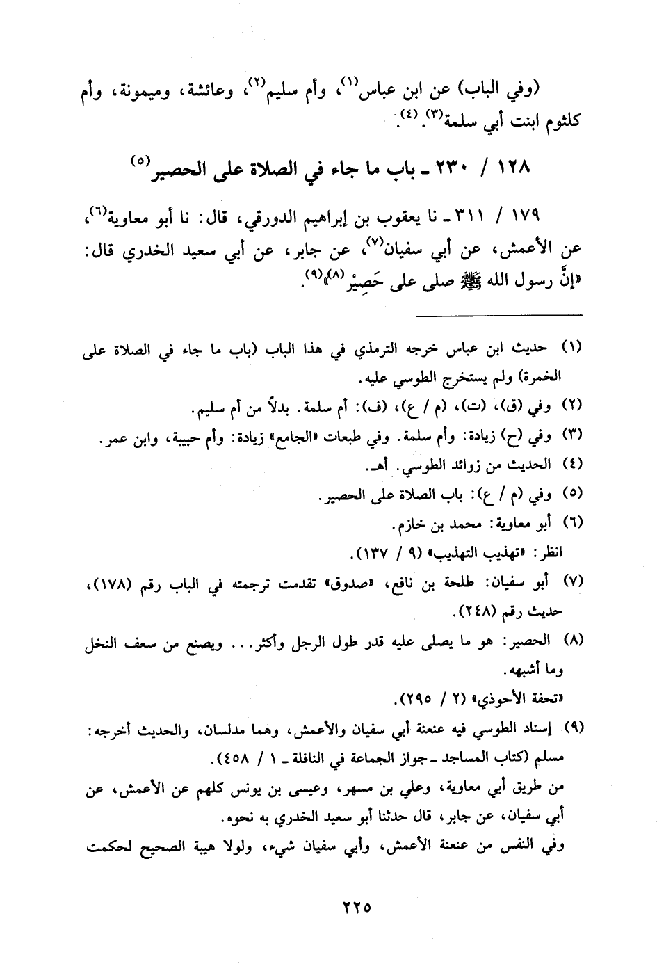 128 - / 230 بَابُ مَا جَاءَ فِي الصَّلاةِ عَلَى الْحَصِيرِ