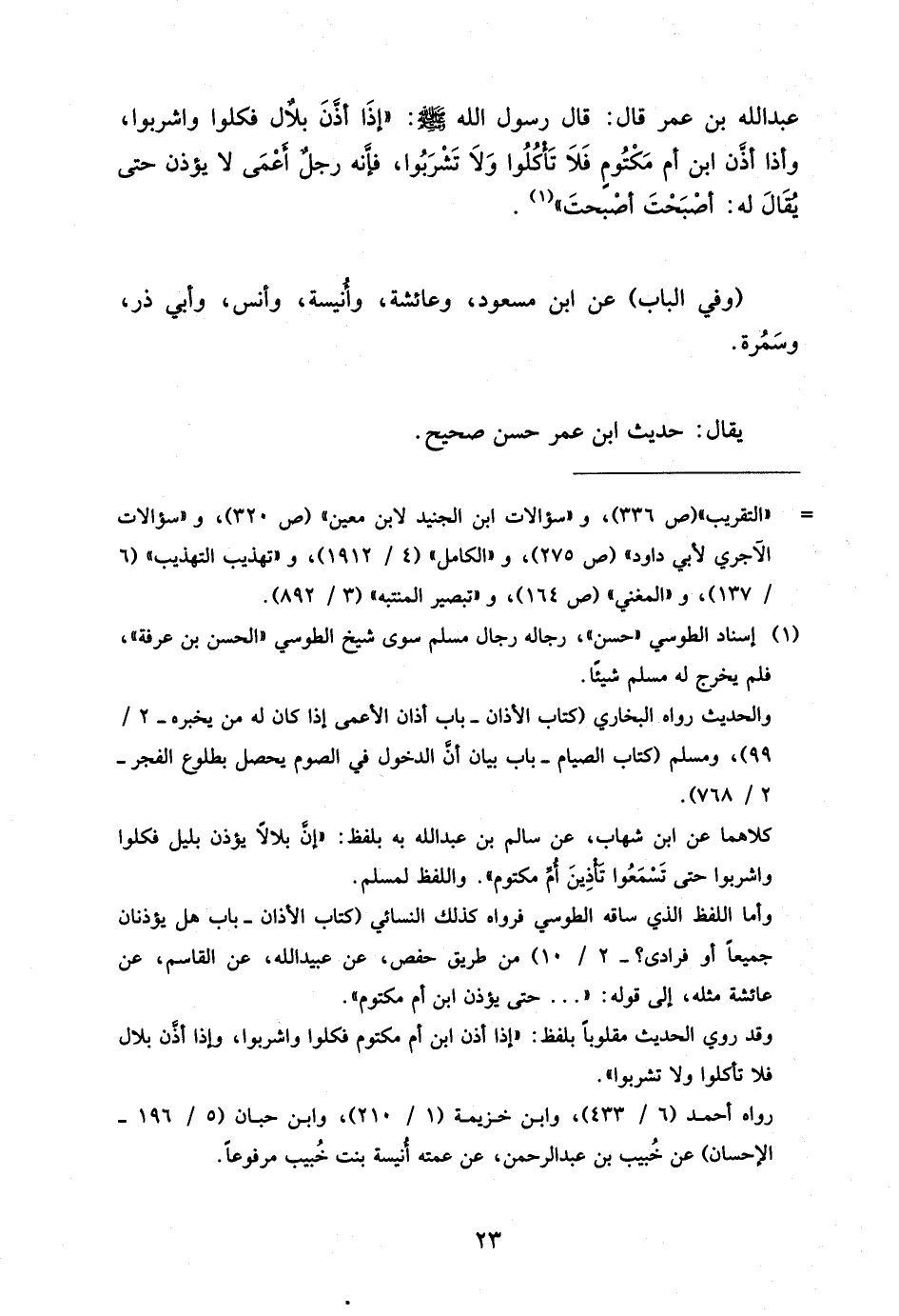 يُقَالُ حَدِيثُ ابْنِ عُمَرَ حَسَنٌ صَحِيحٌ