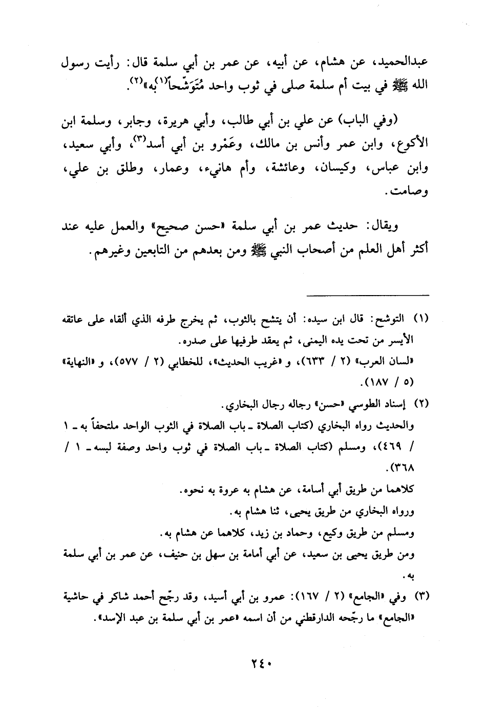 وَيُقَالُ حَدِيثُ عُمَرَ بْنِ أَبِي سَلَمَةَ حَسَنٌ صَحِيحٌ وَالْعَمَلُ عَلَيْهِ عِنْدَ أَكْثَرِ أَهْلِ الْعِلْمِ مِنْ أَصْحَابِ النَّبِيِّ صَلَّى اللَّهُ عَلَيْهِ وَسَلَّمَ وَمِنْ بَعْدِهِمْ مِنَ التَّابِعِينَ وَغَيْرِهِمْ