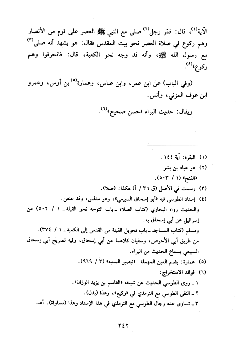 الآيَةَ قَالَ فَمَرَّ رَجُلٌ صَلَّى مَعَ النَّبِيِّ صَلَّى اللَّهُ عَلَيْهِ وَسَلَّمَ الْعَصْرَ عَلَى قَوْمٍ مِنَ الأَنْصَارِ وَهُمْ رُكُوعٌ فِي صَلاةِ الْعَصْرِ نَحْوَ بَيْتِ الْمَقْدِسِ فَقَالَ هُوَ يَشْهَدُ أَنَّهُ صَلَّى مَعَ رَسُولِ اللَّهِ صَلَّى اللَّهُ عَلَيْهِ وَسَلَّمَ وَأَنَّهُ قَدْ وُجِّهَ نَحْوَ الْكَعْبَةِ قَالَ فَانْحَرَفُوا وَهُمْ رُكُوعٌ