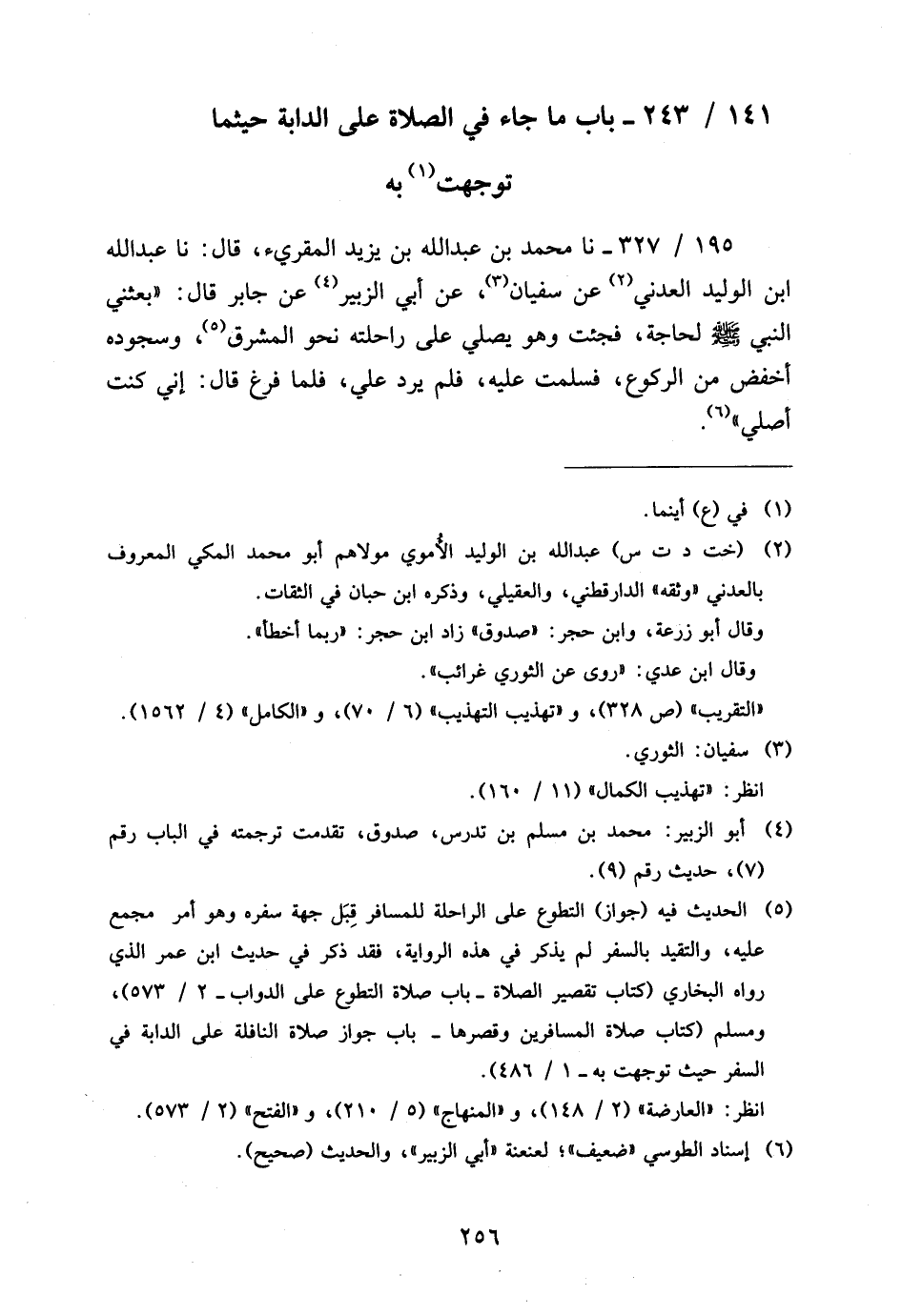 141 - / 243 بَابُ مَا جَاءَ فِي الصَّلاةِ عَلَى الدَّابَّةِ حَيْثُمَا تَوَجَّهَتْ بِهِ
