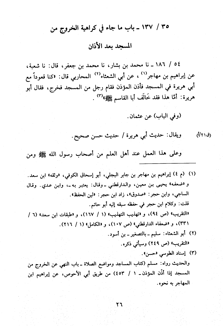 35 - / 137 - بَابُ مَا جَاءَ فِي كَرَاهِيَةِ الْخُرُوجِ مِنَ الْمَسْجِدِ بَعْدَ الأَذَانِ