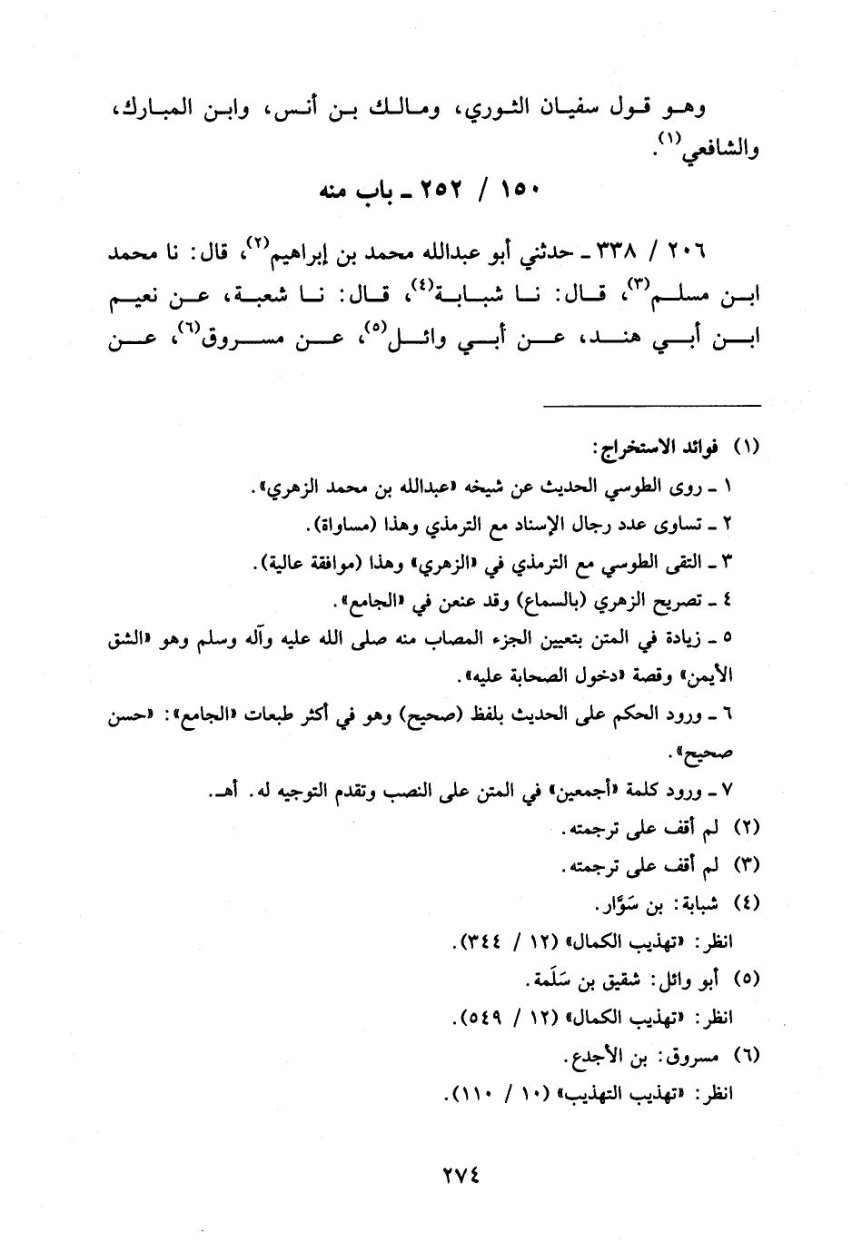 206 - / 338 حَدَّثَنِي أَبُو عَبْدِ اللَّهِ مُحَمَّدُ بْنُ إِبْرَاهِيمَ قَالَ نَا مُحَمَّد ابْن مُسْلِمٍ قَالَ نَا شَبَابَةُ قَالَ نَا شُعْبَةُ عَن نعيم ابْن أَبِي هِنْدٍ عَنْ أَبِي وَائِلٍ عَنْ مَسْرُوقٍ عَن