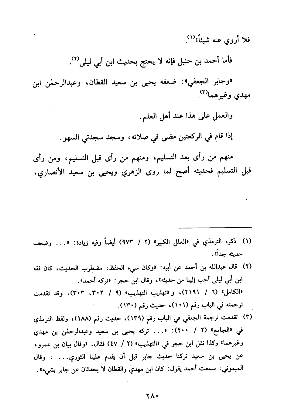 فَأَمَّا أَحْمَدُ بْنُ حَنْبَلٍ فَإِنَّهُ لَا يَحْتَجُّ بِحَدِيثِ ابْنِ أَبِي لَيْلَى