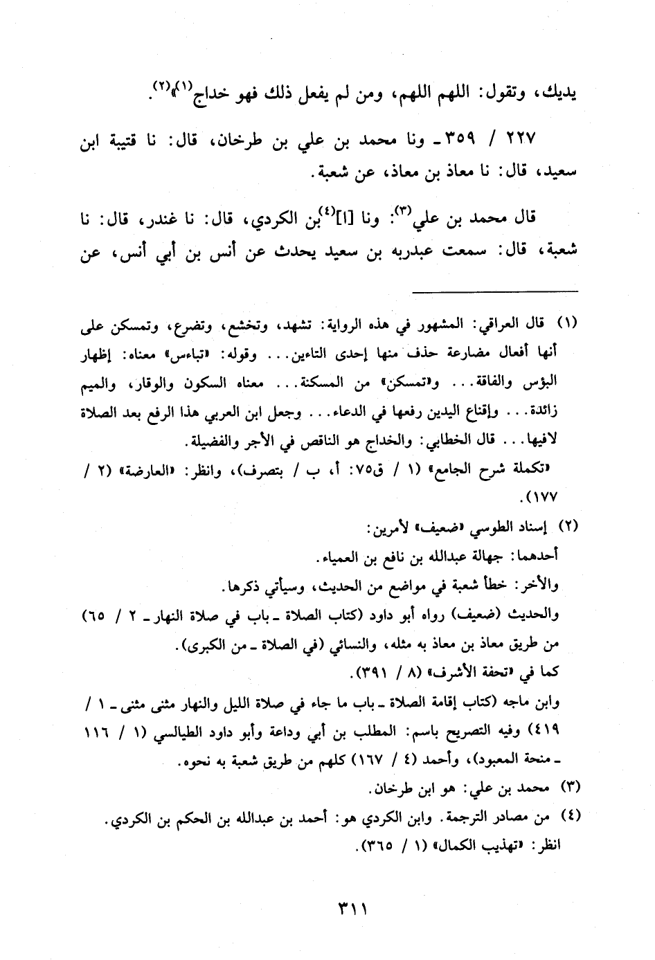 227 - / 359 وَنا مُحَمَّدُ بْنُ عَلِيِّ بن طرخان قَالَ نَا قُتَيْبَة ابْن سَعِيدٍ قَالَ نَا مُعَاذُ بْنُ مُعَاذٍ عَنْ شُعْبَةَ