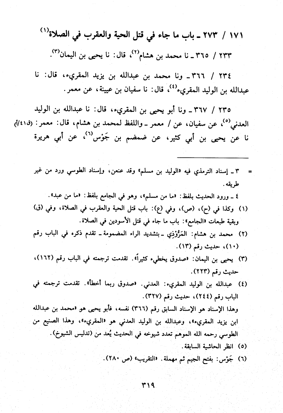 171 - / 273 بَابُ مَا جَاءَ فِي قَتْلِ الْحَيَّةِ وَالْعَقْرَبِ فِي الصَّلاةِ