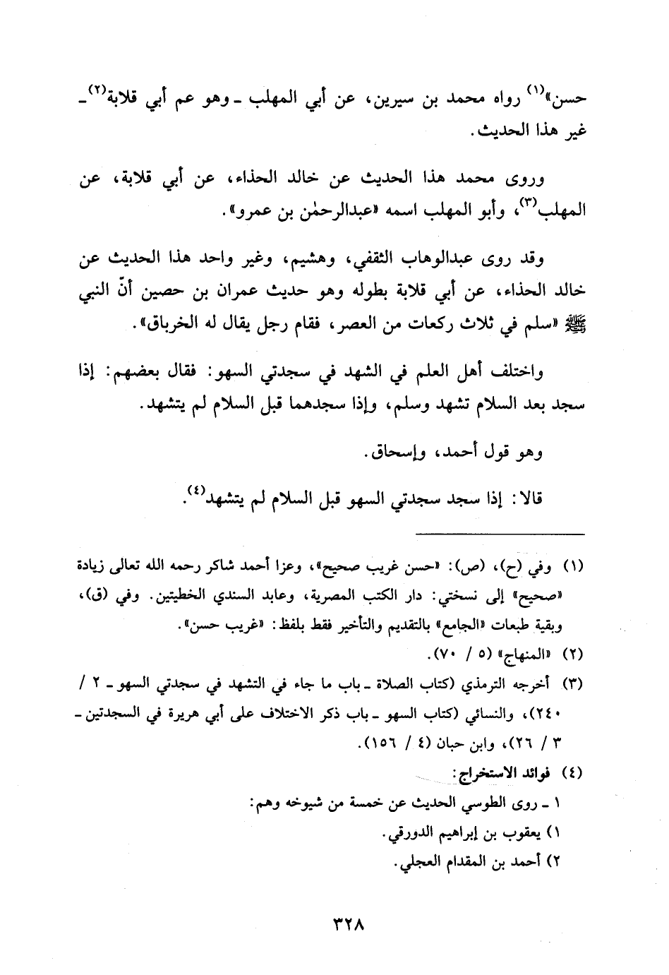 وَقَدْ رَوَى عَبْدُ الْوَهَّابِ الثَّقَفِيُّ وَهُشَيْمٌ وَغَيْرُ وَاحِدٍ هَذَا الْحَدِيثَ عَنْ خَالِدٍ الْحَذَّاءِ عَنْ أَبِي قِلابَةَ بِطُولِهِ وَهُوَ حَدِيثُ عِمْرَانَ بْنِ حُصَيْنٍ أَنَّ النَّبِيَّ صَلَّى اللَّهُ عَلَيْهِ وَسَلَّمَ سَلَّمَ فِي ثَلاثِ رَكَعَاتٍ مِنَ الْعَصْرِ فَقَامَ رَجُلٌ يُقَالُ لَهُ الْخِرْبَاقُ