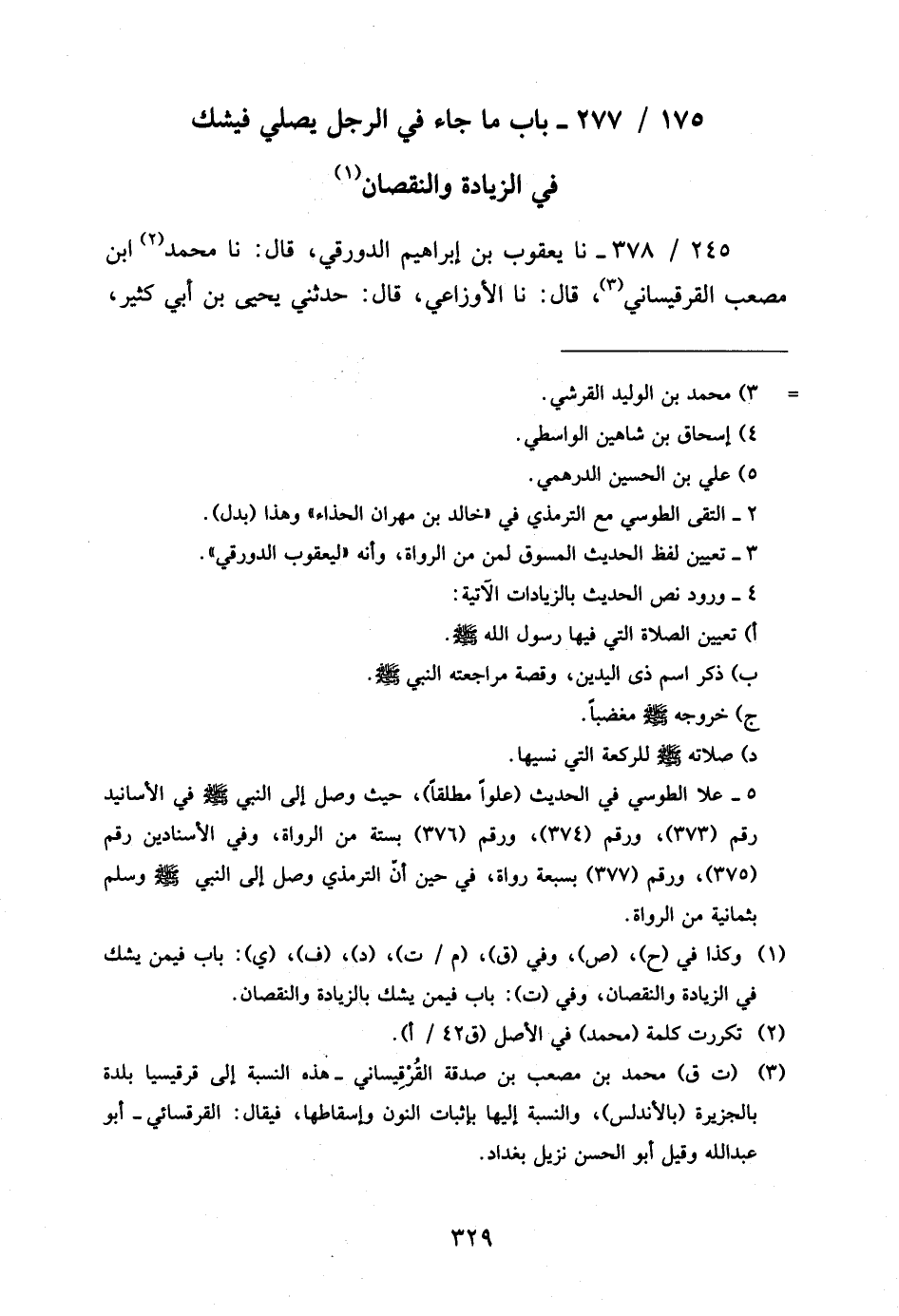 175 - / 277 بَابُ مَا جَاءَ فِي الرَّجُلِ يُصَلِّي فَيَشُكُّ فِي الزِّيَادَةِ وَالنُّقْصَانِ