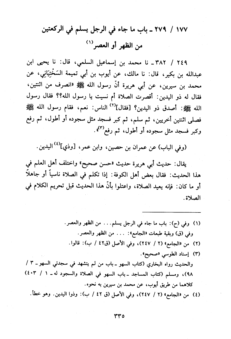 177 - / 279 بَابُ مَا جَاءَ فِي الرَّجُلِ يُسَلِّمُ فِي الرَّكْعَتَيْنِ مِنَ الظُّهْرِ أَوِ الْعَصْرِ