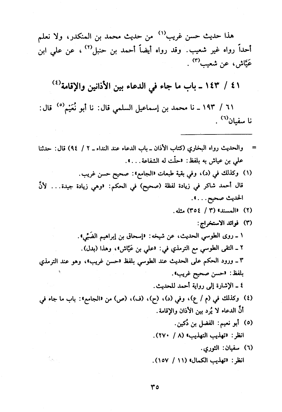41 - / 143 - بَابُ مَا جَاءَ فِي الدُّعَاءِ بَيْنَ الأَذَانَيْنِ وَالإِقَامَةِ