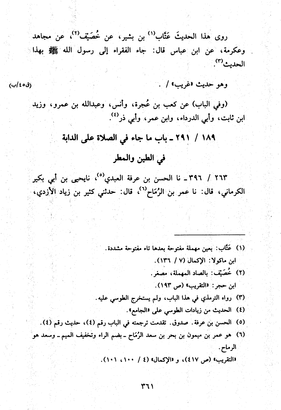 189 - / 291 بَابُ مَا جَاءَ فِي الصَّلاةِ عَلَى الدَّابَّةِ فِي الطِّينِ وَالْمَطَرِ