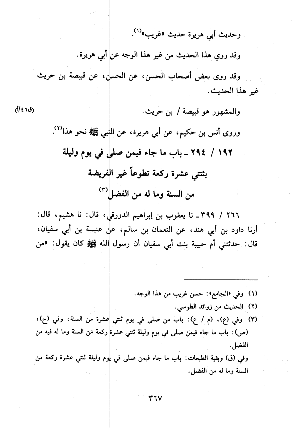 192 - / 294 بَابُ مَا جَاءَ فِيمَنْ صَلَّى فِي يَوْمٍ وَلَيْلَةٍ بِثِنْتَيْ عَشْرَةَ رَكْعَةً تَطَوُّعًا غَيْر الْفَرِيضَةِ مِنَ السُّنَّةِ وَمَا لَهُ مِنَ الْفَضْلِ