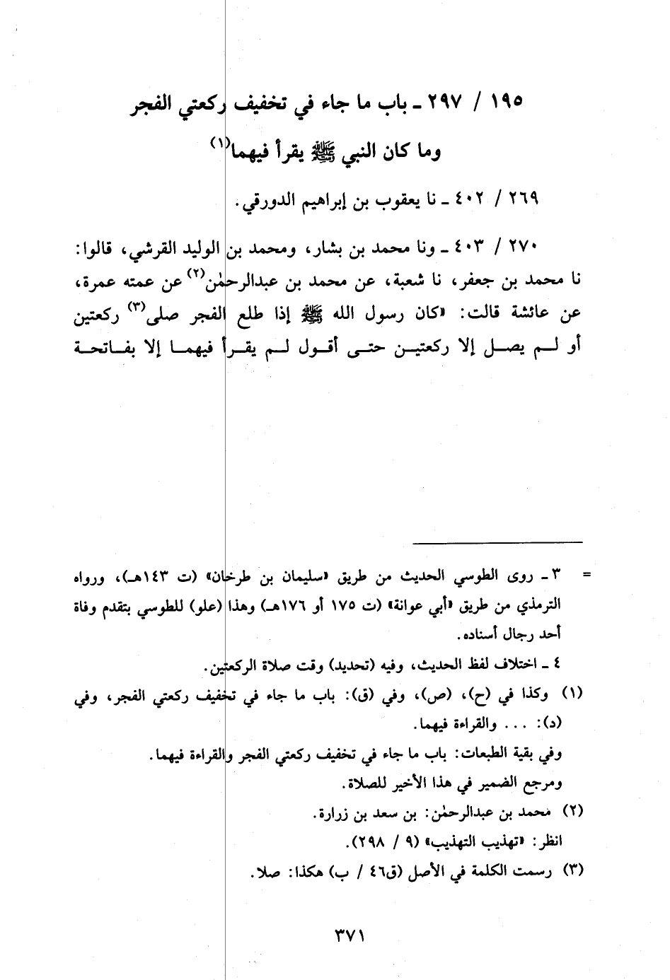 195 - / 297 بَابُ مَا جَاءَ فِي تَخْفِيفِ رَكْعَتَيِ الْفَجْرِ وَمَا كَانَ النَّبِيُّ صَلَّى اللَّهُ عَلَيْهِ وَسَلَّمَ يَقْرَأُ فِيهِمَا
