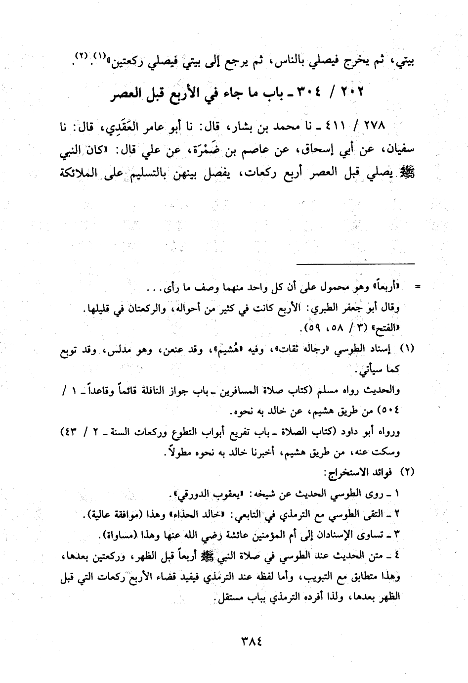 202 - / 304 بَابُ مَا جَاءَ فِي الأَرْبَعِ قَبْلَ الْعَصْرِ